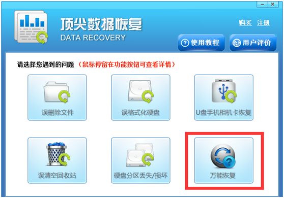 方案3、借助软件恢复数据。 1、借助顶尖数据恢复软件中的“万能恢复”功能。
